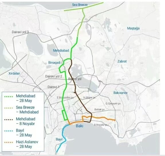 阿塞拜疆数字发展与交通部近日正式公布首都巴库有轨电车网络建设规划,将新建五条线路,与既有地铁、通勤铁路一体化衔接,构建覆盖全城、高效便捷的公共交通骨架,项目定于2030年前全面建成投运。