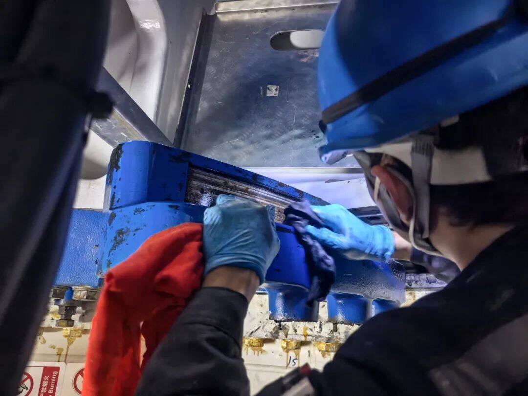 春节期间,中广核江苏海上风电基地项目公司绿谷海上风电场的运维现场依旧繁忙。为保障节日电力可靠供应,场站提前完成了全设备巡检和隐患排查,并备足了应急物资。在风机机舱内,运维人员娄张进正履行监护职责,全程紧盯厂家人员开展的齿轮箱内窥镜检查工作。他身着红色工装,专注观察检测过程,严格监督操作规范,确保每一个环节都安全可控,从专业角度为设备的稳定运行筑牢防线。正是这份“春节不打烊”的坚守,让清洁电力持续点亮万家灯火,为温暖中国年注入了坚实的能源底气。