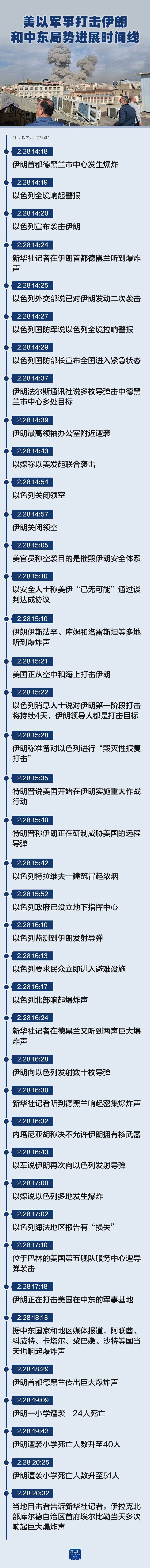 新华社记者当天上午在伊朗首都德黑兰听到多次爆炸声。以色列国防部长卡茨随即宣布,已对伊朗发动“先发制人”打击。美国总统特朗普稍晚宣布,美国正在伊朗展开“大规模的持续军事行动”,要把伊朗导弹工业“夷为平地”。