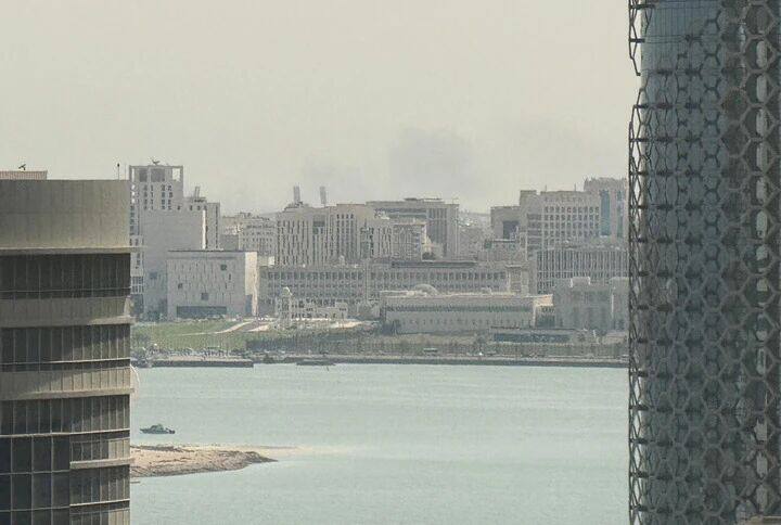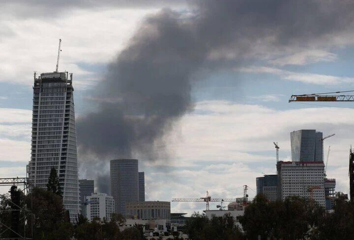 (这是2月28日在以色列特拉维夫拍摄的浓烟。新华社记者 陈君清 摄)