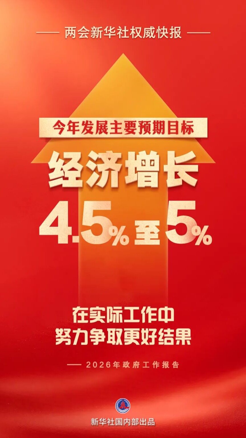 国务院总理李强5日在政府工作报告中提出,今年发展主要预期目标是:经济增长4.5%-5%,在实际工作中努力争取更好结果;城镇调查失业率5.5%左右,城镇新增就业1200万人以上;居民消费价格涨幅2%左右;居民收入增长和经济增长同步;国际收支基本平衡;粮食产量1.4万亿斤左右;单位国内生产总值二氧化碳排放降低3.8%左右。提出这些预期目标,主要考虑是开局之年为调结构、防风险、促改革留出空间,为后期更好发展打牢基础。经济增长目标同2035年远景目标总体衔接,与我国经济长期增长潜力基本吻合,实现这个目标具备有利条件,各地区要结合实际,通过扎实工作争取好的结果。城镇调查失业率5.5%左右,体现了在就业总量和结构性压力较大的情况下,坚持就业优先政策导向和加大稳就业力度的要求。居民消费价格涨幅2%左右,考虑了预期引导和现实可能,我们将通过改善总供求关系,推动价格总水平由负转正、消费价格合理温和回升,促进经济良性循环。单位国内生产总值二氧化碳排放降低3.8%左右,综合考虑了经济社会发展、绿色低碳转型和国家能源安全等多种需要,有利于有序实现2030年前碳达峰目标。(本文转自新华社)见道网编辑/杨美玲