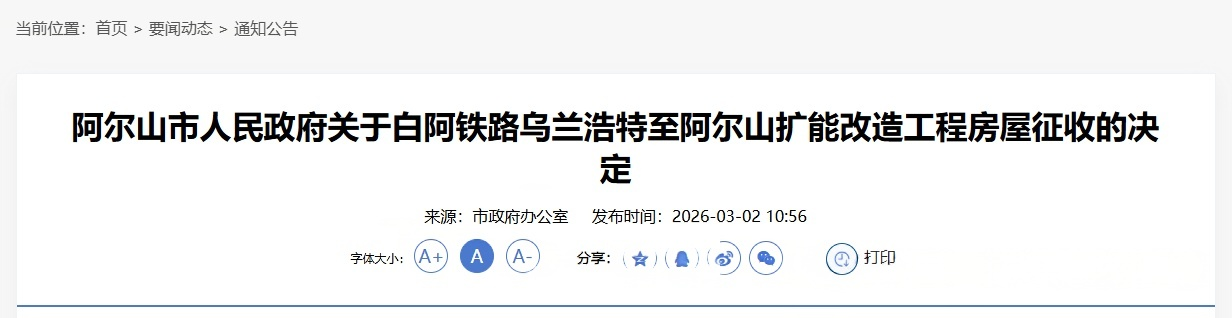 在内蒙古兴安盟的广袤土地上,一条承载着沿线居民出行希望和旅游发展梦想的铁路——白阿铁路,即将迎来历史性的蜕变。2026年3月2日,随着阿尔山市人民政府一纸房屋征收决定的发布,这条连接乌兰浩特与阿尔山的交通动脉正式按下了升级键,计划于今年5月全面开工,向开行动车的目标迈进。