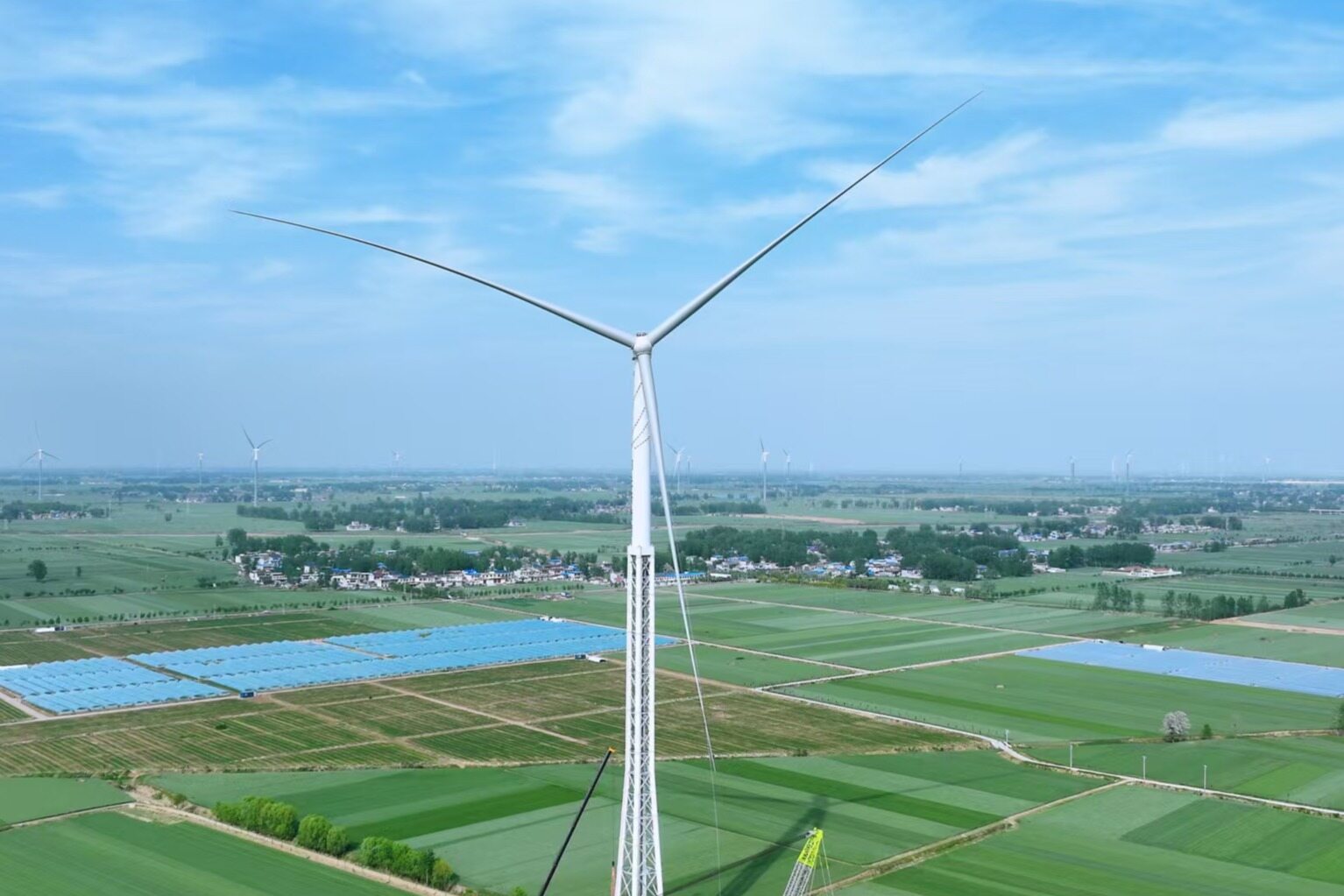 据了解,该项目采用运达股份的6.25兆瓦风机,搭配直径220米的叶轮,轮毂高度200米。项目建成后,将刷新构架式风塔高度,成为亚洲陆上最高的构架式风塔。