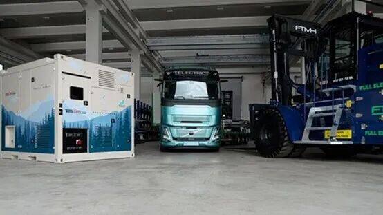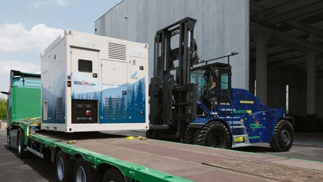 在本次联合展示活动中,FTMH的电动叉车由TecnoGen基于沃尔沃遍达技术打造的电池储能系统(BESS)供电 —— 这一直观演示,充分展现了一套电池平台既能为设备运行提供动力,又能为作业现场供应电力的双重价值。