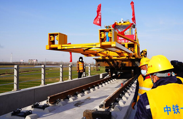 为确保铺轨作业高质量、高效率开展,建设单位周密部署、科学统筹,投入运输、铺轨、牵引等各类专业机械设备百余台套,全力提升施工进度与建设质量。