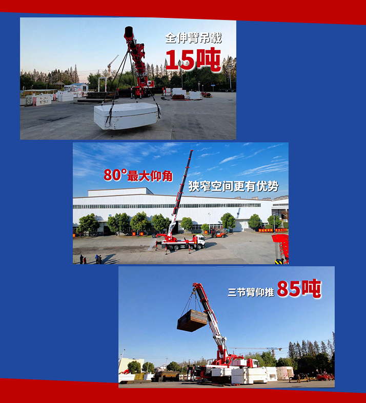 宏昌天马H4680在多个维度上展现了其全场景适应能力。全伸臂15吨、三节臂仰推85吨、80°最大仰角等,远距离吊装可靠!设备自重结构设计合理!狭窄空间更有优势!