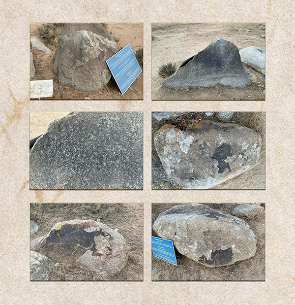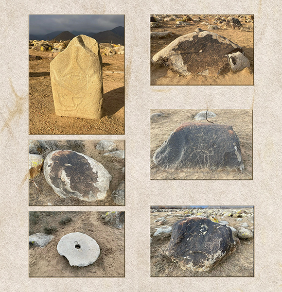 岩画内容极具史料价值,主题围绕早期游牧生活展开:动物图案占比极高,鹿的形象尤为突出,辅以山羊、马等草原生灵;狩猎场景与人物形象刻画生动,真实还原了远古先民的捕猎劳作与社会活动。此外,岩画中也蕴含了反映日常习俗与精神信仰的符号,为解读中亚古代游牧文明提供了直观且珍贵的实物例证。关键词:岩画、游牧文明、文化遗迹
