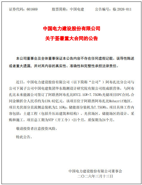 从2025年锁定合作资格,到如今合同落地,中国电建在中东的每一步都踩在了全球能源转型的鼓点上。而这次签约,正是中国新能源企业深耕一带一路市场、以硬核实力赢得国际竞争的最佳注脚。
