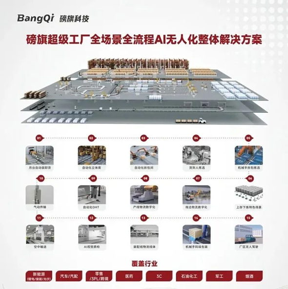 基于此,磅旗可交付“超级工厂全场景全流程AI无人化整体解决方案” ,系统性重构从原料到成品的全流程: