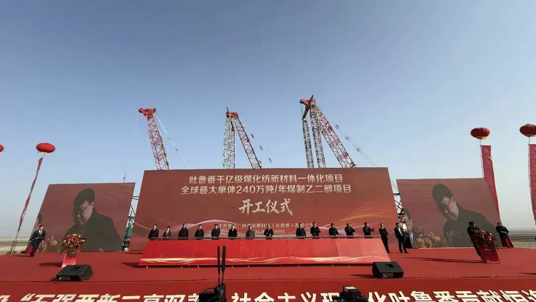 2026年3月20日,吐鲁番市煤化纺一体化项目一期——年产240万吨高品质纤维用煤制乙二醇项目,在吐鲁番经济开发区煤基新材料循环产业园区正式动工建设。该项目为当前全球在建单体规模最大的高品质纤维用煤制乙二醇工程,也标志着新疆在煤炭清洁高效利用、煤基新材料产业向高端化、一体化、绿色化升级上迈出重要一步,将有力带动煤炭—化工—纺织全产业链协同发展。