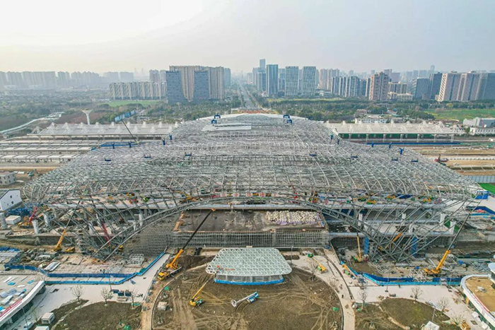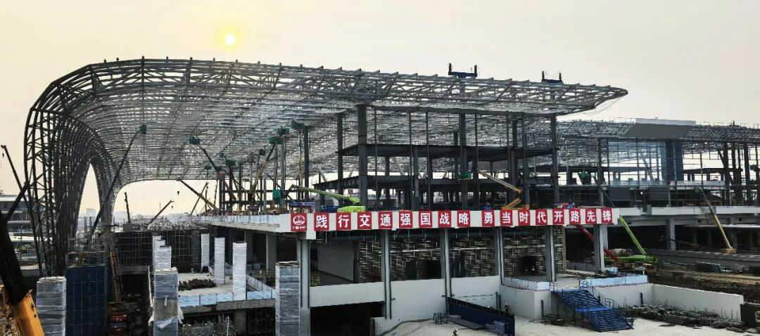 当前,新建南通站站房工程各施工板块均按计划有序推进,整体建设进度不断加快。新站房主体结构、钢结构、砌体结构已基本施工完毕,室内装饰装修、抹灰收尾等工作同步开展,枢纽主体完整轮廓已然成型;站场雨棚结构施工全部收官,站台铺装、屋面施工及配套设施建设全面启动;市政配套工程、生产生活用房建设也严格按照既定节点稳步实施,全力保障项目按期竣工并投入使用。