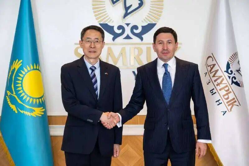 2026年3月30日,驻哈萨克斯坦大使韩春霖视频出席巴甫洛达尔1GW风电+储能项目启动仪式并致辞。萨姆鲁克—卡泽纳国家财富基金主席扎库波夫、巴甫洛达尔州州长拜汗诺夫等出席。