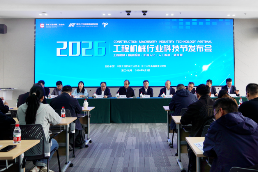 2026年4月2日,中国工程机械工业协会与浙江大学高端装备研究院在浙江省杭州市联合举办了2026工程机械行业科技节发布会。全国政协常委、中国工程院院士、浙江大学工学部主任、浙江大学高端装备研究院院长杨华勇院士;中国工程机械工业协会会长苏子孟,副会长兼秘书长吴培国;北京航空航天大学具身智能机器人研究院院长、遨博(北京)智能科技股份有限公司董事长魏洪兴教授;广西柳工机械股份有限公司总工程师林明智;杭叉集团股份有限公司总经理助理李明辉;浙江大学高端装备研究院常务副院长谢海波教授,总工程师张斌教授同高校、企业、媒体代表等50余人参加了发布会。会议由谢海波主持。