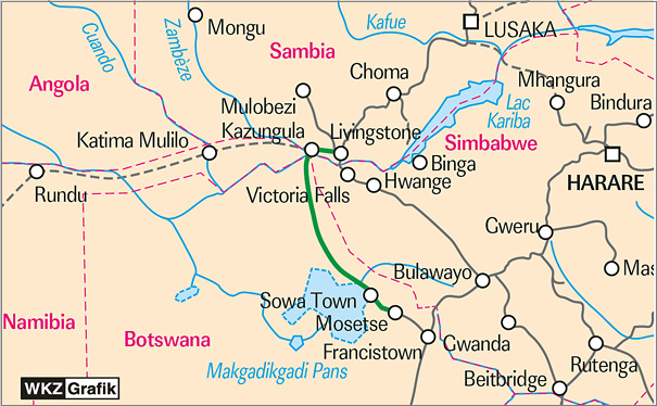 莫塞策-卡宗古拉-利文斯顿铁路是连接博茨瓦纳与赞比亚的跨境铁路项目,致力于提升南部非洲发展共同体的贸易往来、互联互通水平与区域一体化进程。线路总长约430公里,其中博茨瓦纳境内段长365公里,由莫塞策至卡宗古拉;赞比亚境内段长65公里,由卡宗古拉至利文斯顿。该铁路将利用已在2021年通车、全长923米的赞比西河卡宗古拉大桥实现跨河通行。项目建成后,预计将有效优化客货运输条件、降低物流成本,同时减轻公路交通设施的承载压力。