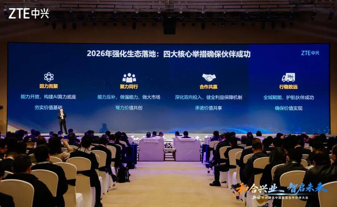 在春意盎然的四月,一场以“和合兴业,智启未来”为主题的生态盛会在深圳拉开帷幕。中兴通讯高级副总裁、首席战略官王翔站在2026年中兴通讯中国生态合作伙伴大会的台上,面对来自全球的合作伙伴,他语气坚定地宣布——中兴通讯正式发起“和合生态行动倡议”。这不仅是一次战略升级,更是在人工智能浪潮席卷千行百业的今天,中兴通讯与生态伙伴共同许下的承诺:携手打破壁垒、开放能力,以“和合共生”之姿,智启一个更加普惠、共赢的AI新未来。