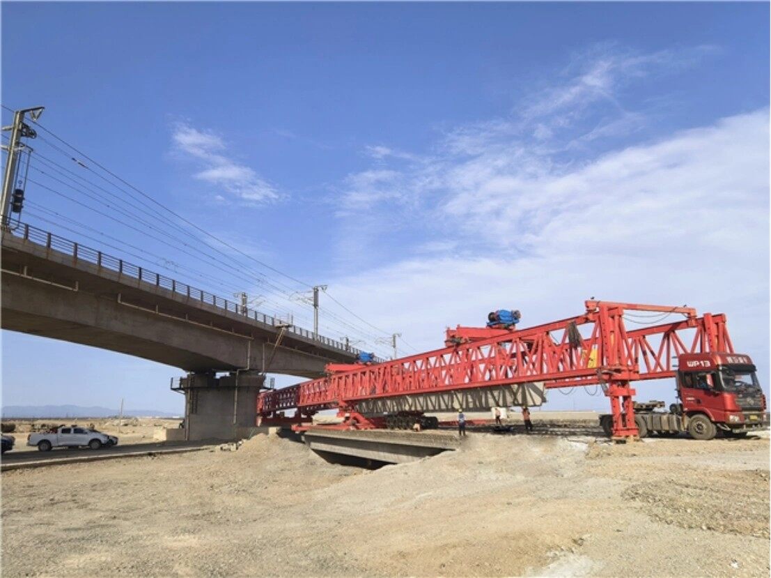 作为G30连霍高速哈密至吐峪沟段改扩建工程的关键节点,该大桥采用转体法施工,T形连续梁与兰新铁路并行作业,先完成两跨65米T形刚构连续梁浇筑,再在铁路运营“天窗期”完成2万吨连续梁转体。施工期间,团队成功克服天窗作业紧张、大吨位转体难度高、邻近既有线路安全管控严等诸多挑战。