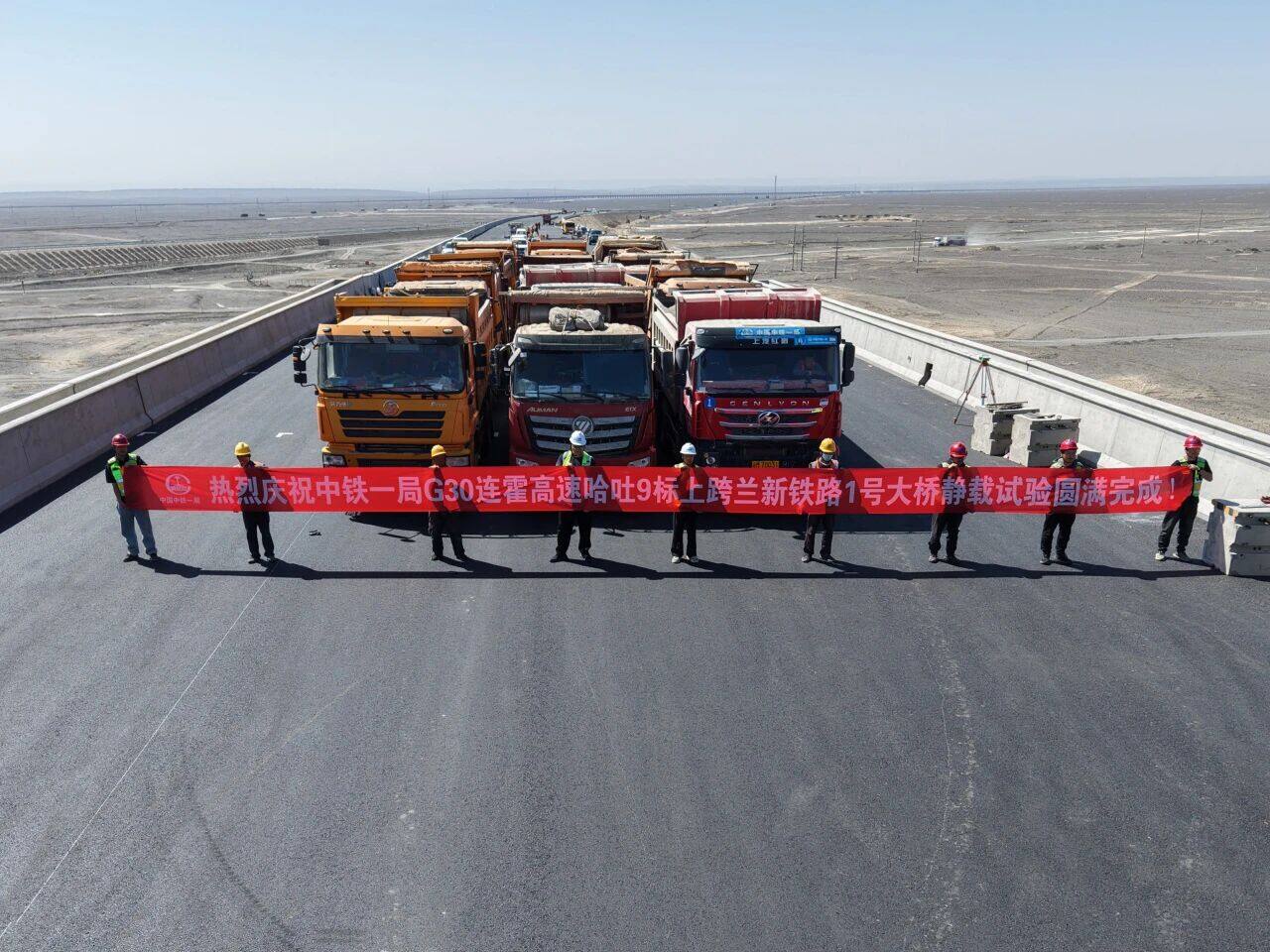 清晨的阳光洒在兰新铁路上空,G30连霍高速哈吐9标工地上,工作人员屏息等待着一个重要时刻——1号大桥动、静载试验正式收官。