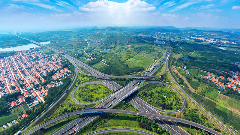 全线桥梁规模适中,设特大桥1座长3027米、大桥18座长5933.7米、中桥11座长799 米,桥梁总长不足10公里,占主线里程约12%。作为平原微丘区高速,桥梁主要用于跨河、跨路、跨铁路。全线设分离立交19处,含铁路交叉3处、公路交叉16处,涉铁涉路节点协调工作量较大。项目共设互通立交9座,其中枢纽互通5座、一般互通4座,枢纽占比过半,路网衔接能力突出,可与荣乌、沈海、青新等高速实现交通转换;配套服务区1处、停车区1处、养护工区2处、监控通信分中心1处、主线收费站1处、匝道收费站5处,沿线设施配置规范。