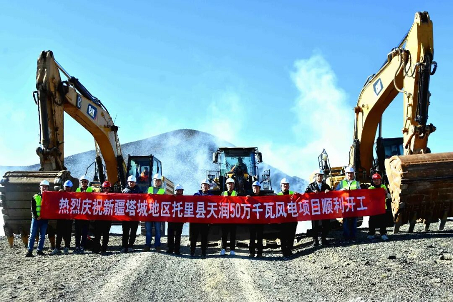 四月的托里县铁厂沟南部山区,积雪初融,黄土裸露。往日只有风声呼啸的山谷里,如今响起了挖掘机的轰鸣。铲车与运输车在海拔1200米至1600米的丘陵间穿梭,像一群忙碌的“工蚁”,为即将矗立在此的50台10MW风力发电机组平整地基、修建道路。这片曾经寂静的戈壁荒山,正随着天润50万千瓦风电项目三期的开工,变身成为清洁能源的“聚宝盆”。