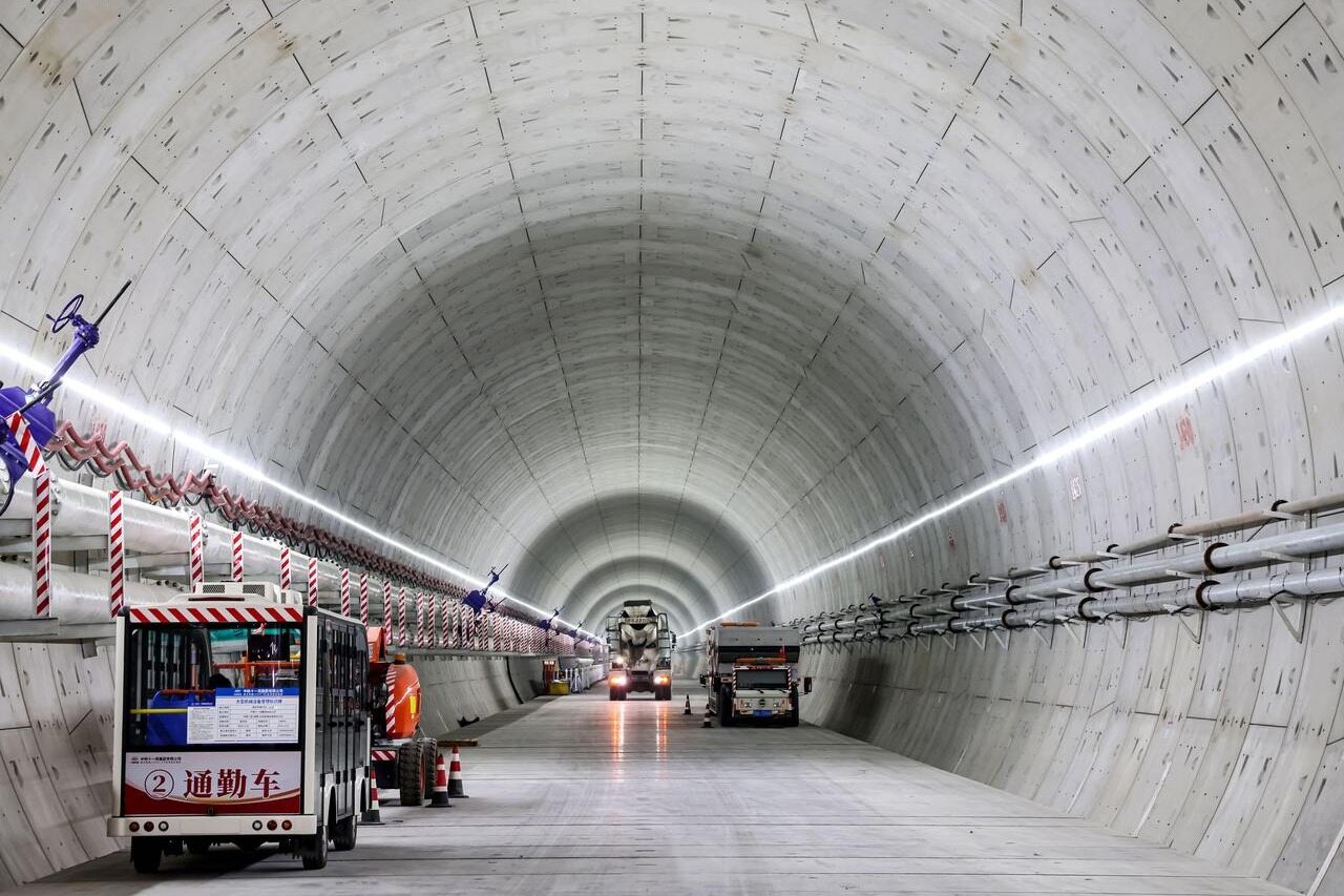 在百余米深的海底掘进,如何处理“嚼碎”的岩土是关键。“深江1号”配备双管道泥浆循环系统:一根输送稀泥浆至刀盘润滑降温,另一根将含渣稠泥浆泵送至地面处理厂,渣土筛分后泥浆循环利用。隧道采用“边挖边拼”工艺,直径超13米的断面由9片预制管片拼合而成,工厂预制与现场装配无缝衔接,大幅压缩施工周期。关键词:基建工程新闻网、高铁盾构隧道、海底最深