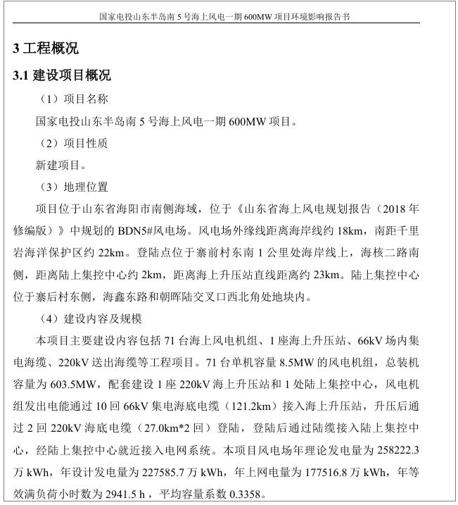 2026年4月14日,山东半岛南5号海上风电一期600MW工程静探及钻探外业中标候选人公示。该项目位于海阳市南侧海域,离岸约18公里,总装机603.5MW,拟安装71台8.5MW风电机组,配套建设220kV海上升压站。此次勘察定标标志着项目正式迈入施工前筹备阶段,为后续主体工程开工奠定地质数据基础。