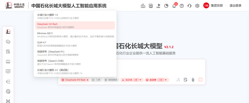 “我们从模型架构设计阶段就密切关注其与国产芯片的适配性。”中国石化相关技术负责人介绍,在获取开源模型权重的第一时间,团队依托自建的国产化智算资源池,展开了密集的部署与调优工作。从模型加载、推理测试到性能压测,整个流程在数小时内完成闭环。发布当日,DeepSeek-V4-Flash模型便成功接入中国石化统一的长城人工智能平台,实现了从开源发布到企业私有化上线的“零日响应”,目前该模型已面向全集团提供推理服务。