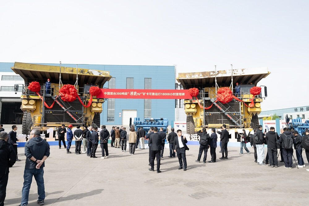 4月24日,在内蒙古鄂尔多斯准格尔旗黑岱沟露天煤矿,一台搭载潍柴12M55发动机的300吨级矿卡完成18000小时稳定运行,并通过验收。