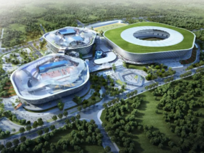 除了钢结构外,体育场项目的看台二次结构、室内二次结构、抹灰、精装样板间等已基本完成,室内正在进行精装修施工。