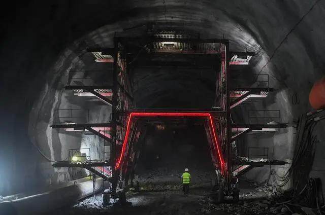 The Tiejiachong No. 1 tunnel is 860 meters long and the route passes through the Dabie Mountain granite stratum. It is difficult to construct. The construction personnel use intelligent supporting equipment to safely pass through complex geology, effectively solving the problems of low tunnel construction efficiency and high safety risk factor. At present, the construction of the main project of the yellow-high-speed railway has been completed by about 50%.