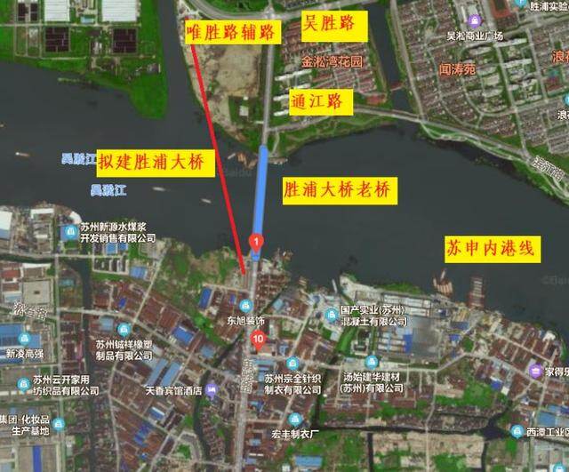 原胜浦大桥位于苏州市工业园区和吴中区交界处,是园区跨越吴淞江的重要通道之一,但老桥现状为危桥,存在较大安全隐患。因其承受荷载有限,已采取限载通行多年,严重制约了两岸居民的出行和社会经济往来。