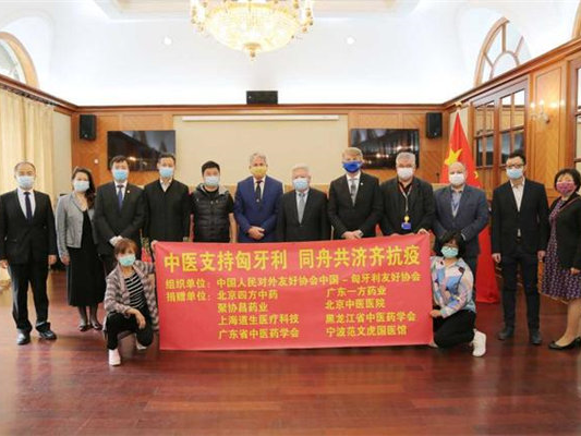 中医药抗疫物资捐赠给匈牙利科学院院士绍窦尼工作团队
