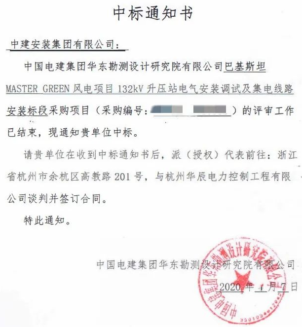 该项目位于巴基斯坦信德省特达县Jamshoro区,合同总价1150万元人民币,主要内容为风电场升压站电气安装调试及集电线路安装施工工程。