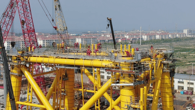 2020年6月10日,中国石化发布公告,由胜利油建公司承建的江苏如东 H5#海上风电项目,1250吨海上升压站导管架完成滑移装船顺利出海。