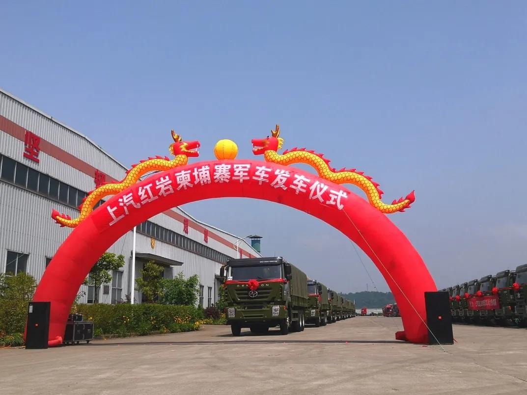 近日,共计290辆红岩军车在重庆上汽红岩生产基地发车,经海运后交付柬埔寨政府。