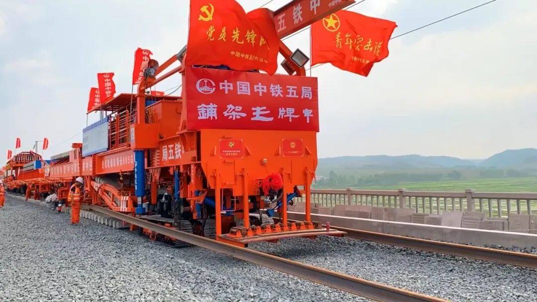 为确保项目如期推进,施工单位缩短冬休时间提前复工复产,在做好疫情防控的基础上,加强作业人员组织,全力做好钢轨、轨枕进场等工作,发挥智能化铺轨机组人工投入少、效率高、精度高、铺轨一次成型等优势,以日均2公里的速度快速推进铺轨施工。