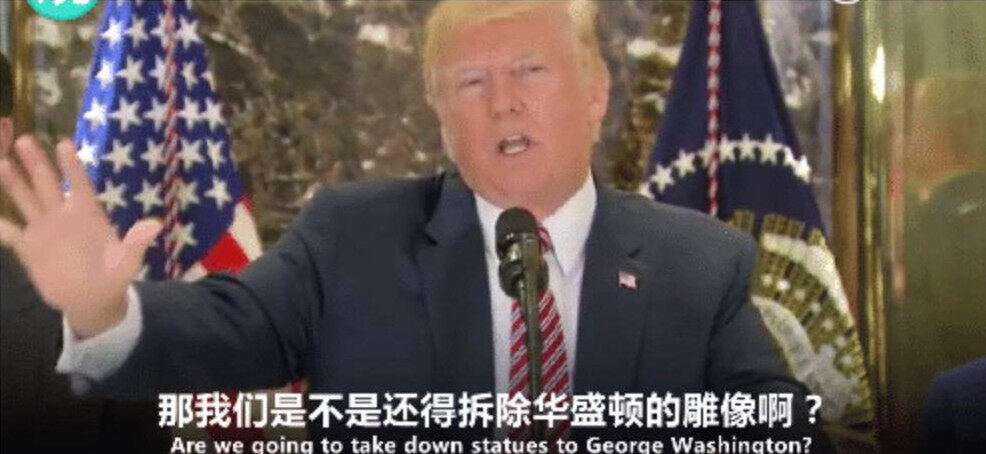 2017年8月15日,特朗普回应弗吉尼亚暴乱时表示:“乔治.华盛顿是个奴隶主,那他的地位因此受损了吗?我们是不是还要把华盛顿的雕像拆除啊?托马斯.杰斐逊呢?他也是个大奴隶主,要拆他的雕像吗?"