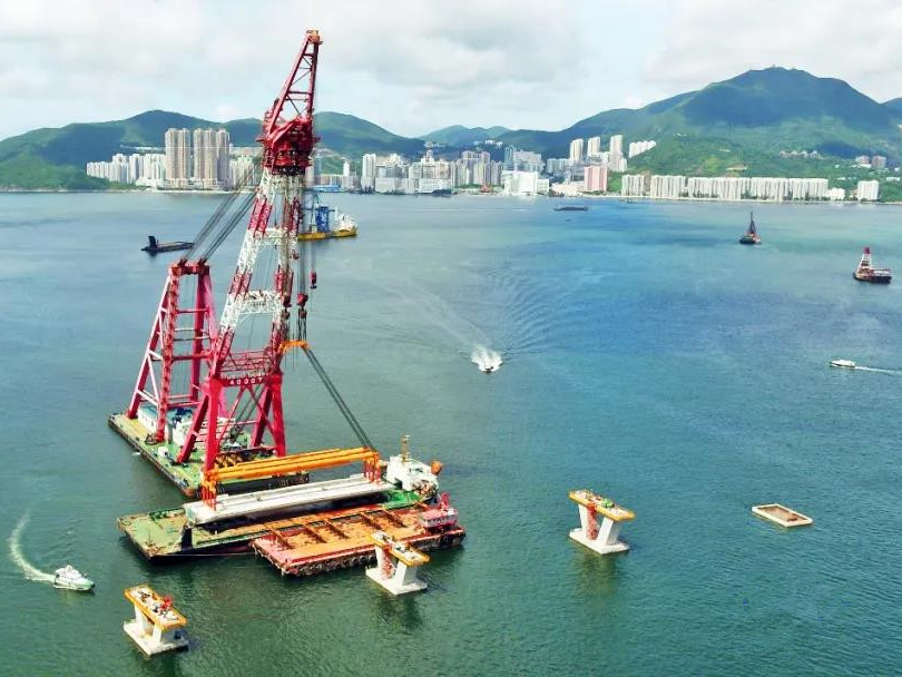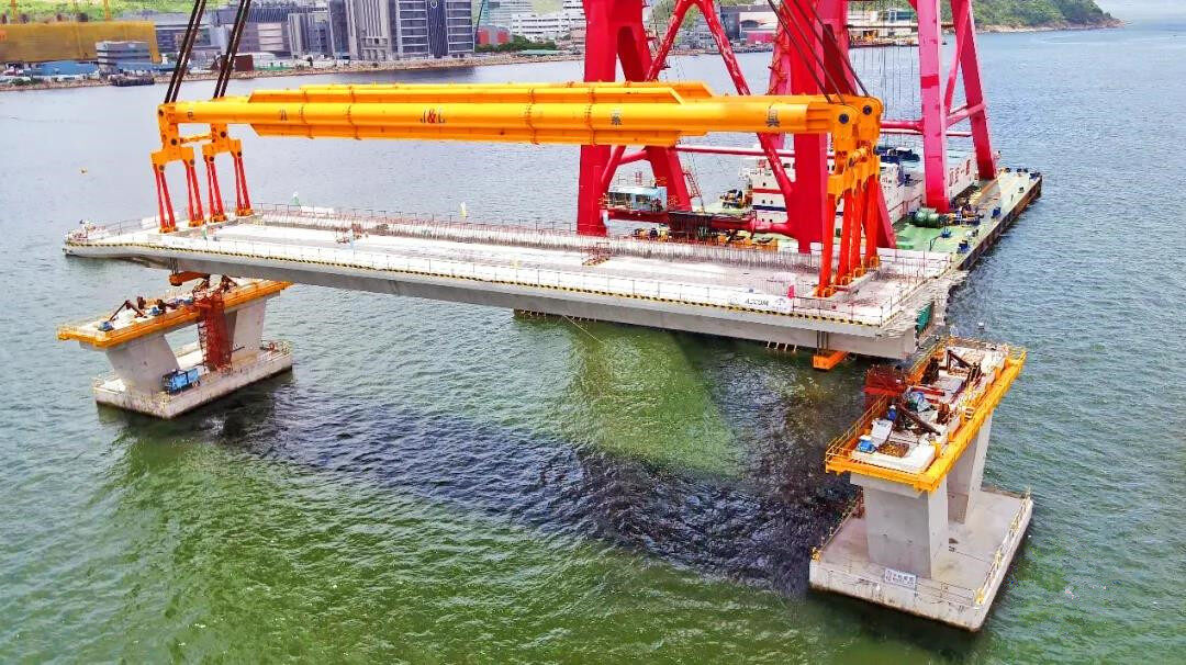 6月22日,香港将军澳跨湾大桥项目的首榀大跨径预应力混凝土箱梁吊装成功。