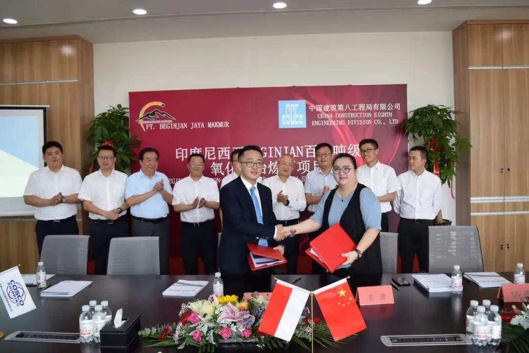 6月22日上午,中建八局与印尼BJM公司签署印尼西加百万吨级氧化铝厂项目商务合同。