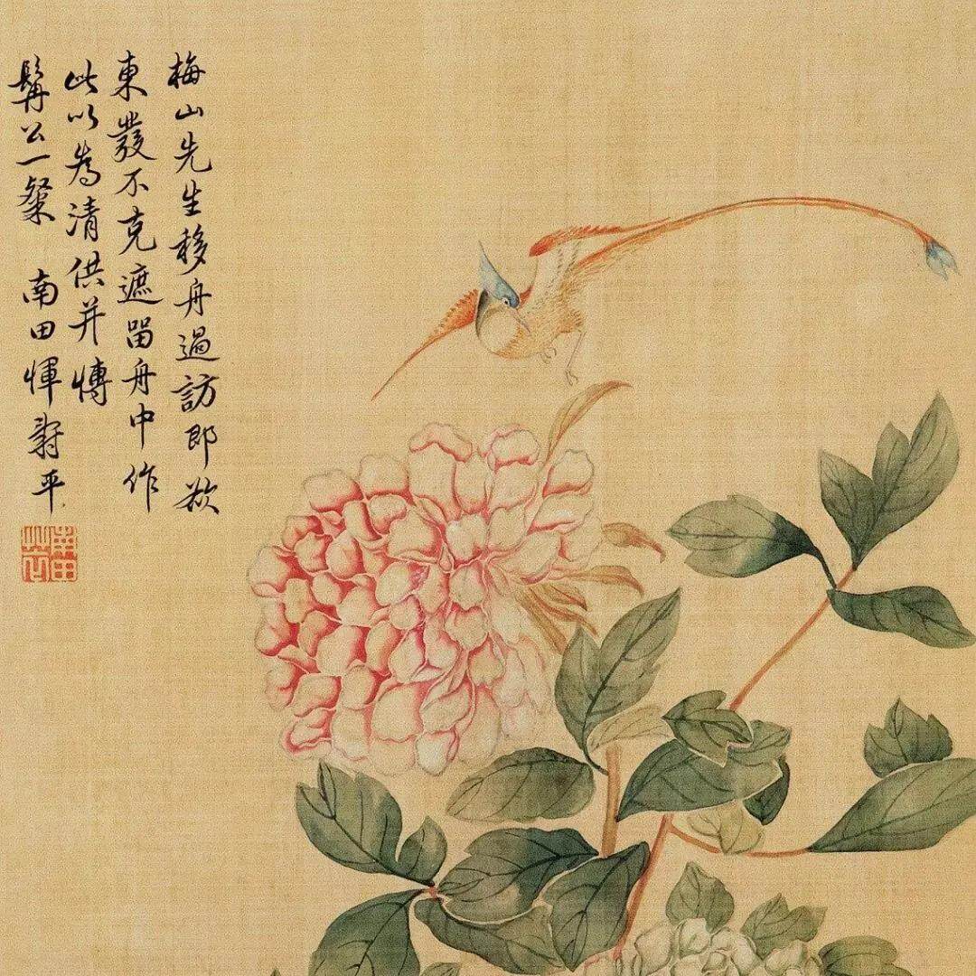 青年男女在河边游嬉,临别时赠送芍药花束以传递情意,芍药花也因此成为“情人花”。