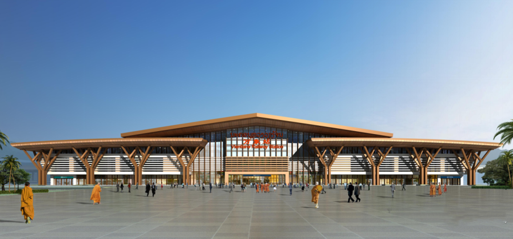 万象站是中老铁路全线目前新建的20座客货运站房中,面积最大的站房,站房建筑面积为14543㎡,设计规模为4台7线(含正线),预留2台3线,站房设于正线南侧,长220m,宽90m,高25m,车站最高设计聚集人数 2500 人。万象站以“畅通融合、绿色温馨、经济艺术、智能便捷”为客站建设新理念,充分考虑当地特点、民族特色,以“檀木之城,中老之谊”为设计思路,深度融合中老两国文化传统、民族气质精神,塑造简洁、整体、现代的交通建筑风貌,创造以人为本、绿色环保的中国铁路站房形象。
