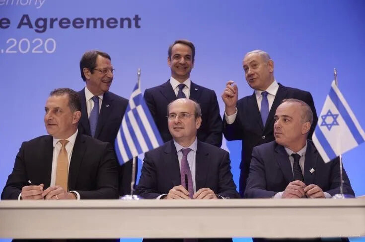2020年1月2日,希腊、塞浦路斯和以色列三国领导人在希腊雅典签署了东地中海天然气管道协议,协议计划修建一条总长约2100公里的东地中海海底天然气管道,途经希腊、塞浦路斯和希腊,把以色列和塞浦路斯生产的天然气输送至欧洲。该项目计划2020年中期开始建设,预计2025年建成,投资总额约80亿美元,建成后将满足欧盟约10%的天然气需求。