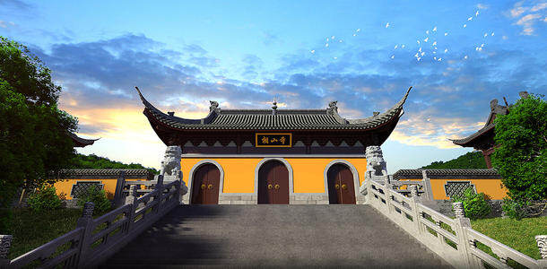 开间,平面组合中的佛寺院落大多数开间都是单数,这也是中国古代以单数为吉祥。开间越多,等级越高,如大雄宝殿用九、五开间,以象征帝王之尊。其余大殿一般为三间。间的纵深为进深,开间与进深形成一定的比例关系,使整体建筑取得和谐统一的效果。