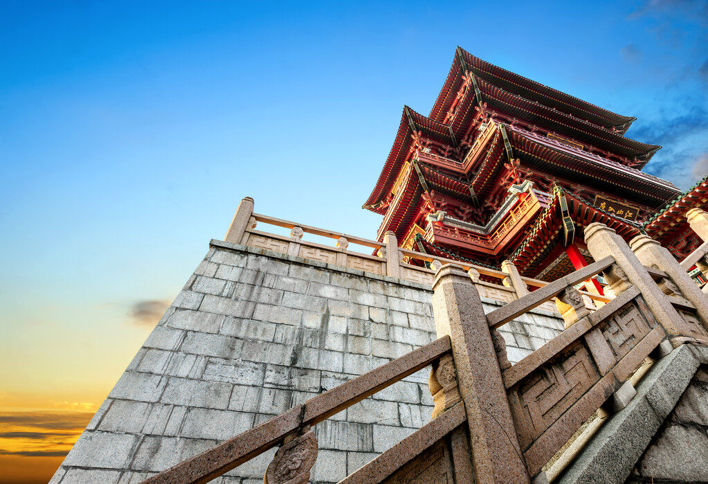 基座,分为普通基座与高级基座;以显示建筑寺庙的等级和风格。普通基座一般用在天王殿,随着院落的进深,基座逐渐升高。大雄宝殿的基座,人们常称为须弥座,把大雄宝殿置于须弥座上,借助于台基高隆的地势,周围建筑群体的烘托,以显示佛殿的宏伟庄严。
