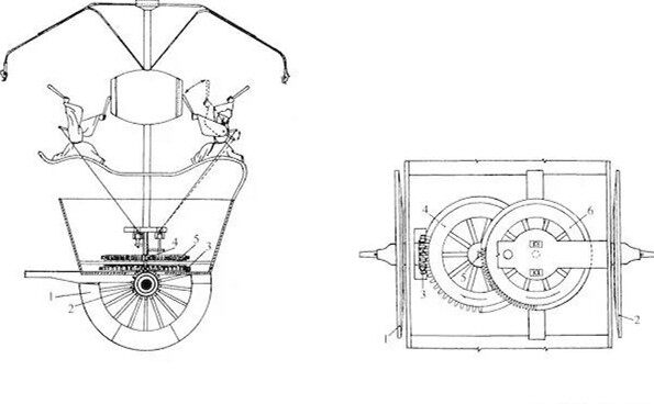 《苏州府志》记载,清初,苏州巧匠徐正明,有感于《山海经》飞车故事,于是″瞑目沉思,伸纸画图,屡画屡改,寝食具忘,期年稿始就。按图操斫,有不合者削之,虽百易不悔″。终于制成了一辆″飞车″。″如栲栳椅子式,下有机关,齿牙错合,人坐椅中,以两足击板上下之,机转风旋,疾驶而去,离地尺许,飞渡港叉不由桥。”