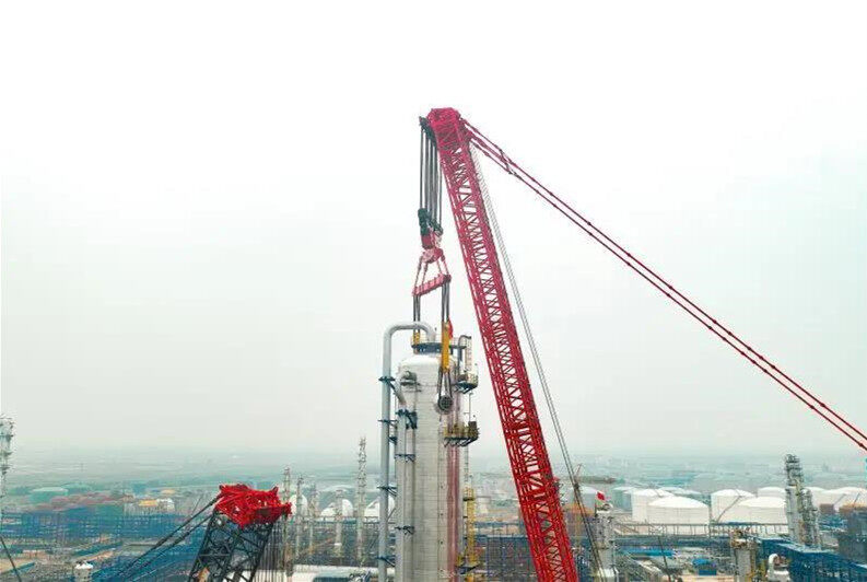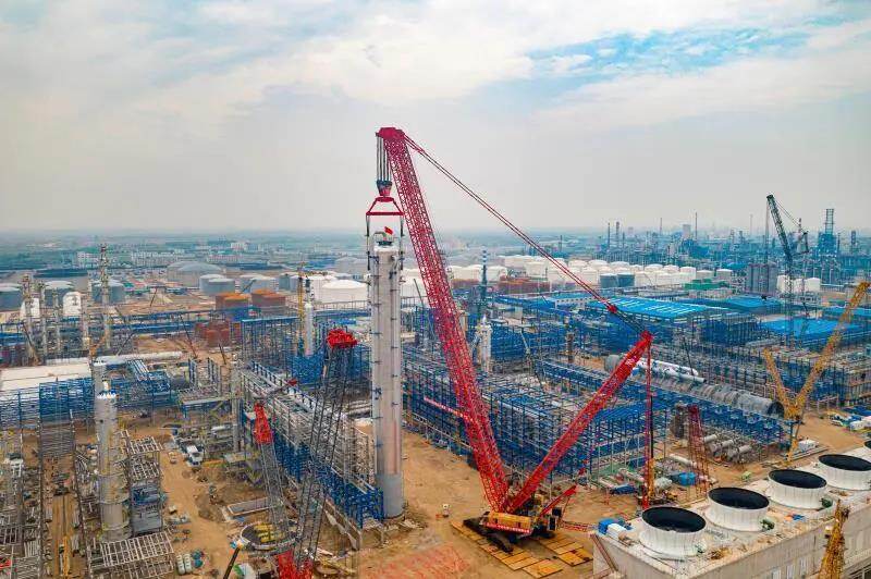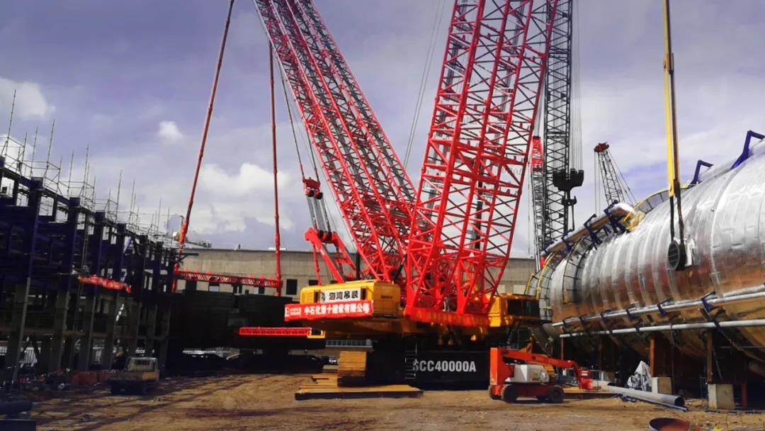 7月15日,山东寿光,鲁清石化项目现场,由三一重工研发制造、全球最大4000吨履带起重机SCC40000A,顺利完成了4号“1500吨级”丙烯塔吊装。