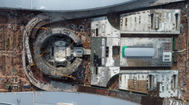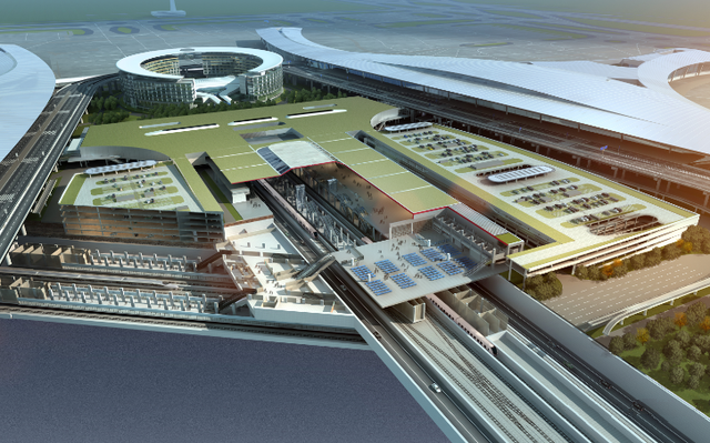 由北京城建集团承建的天府国际机场综合换乘中心工程介于T1、T2航站楼之间,在国内首次采用叠级式高铁及城市轨道交通下穿航站区的设计,将实现进出港旅客航空、铁路、地铁、高速公路的立体换乘和无缝衔接。其中,成自高铁机场代建段建筑面积约8万平米,包含510米长车站主体及164米长区间隧道,层高最高达12米。