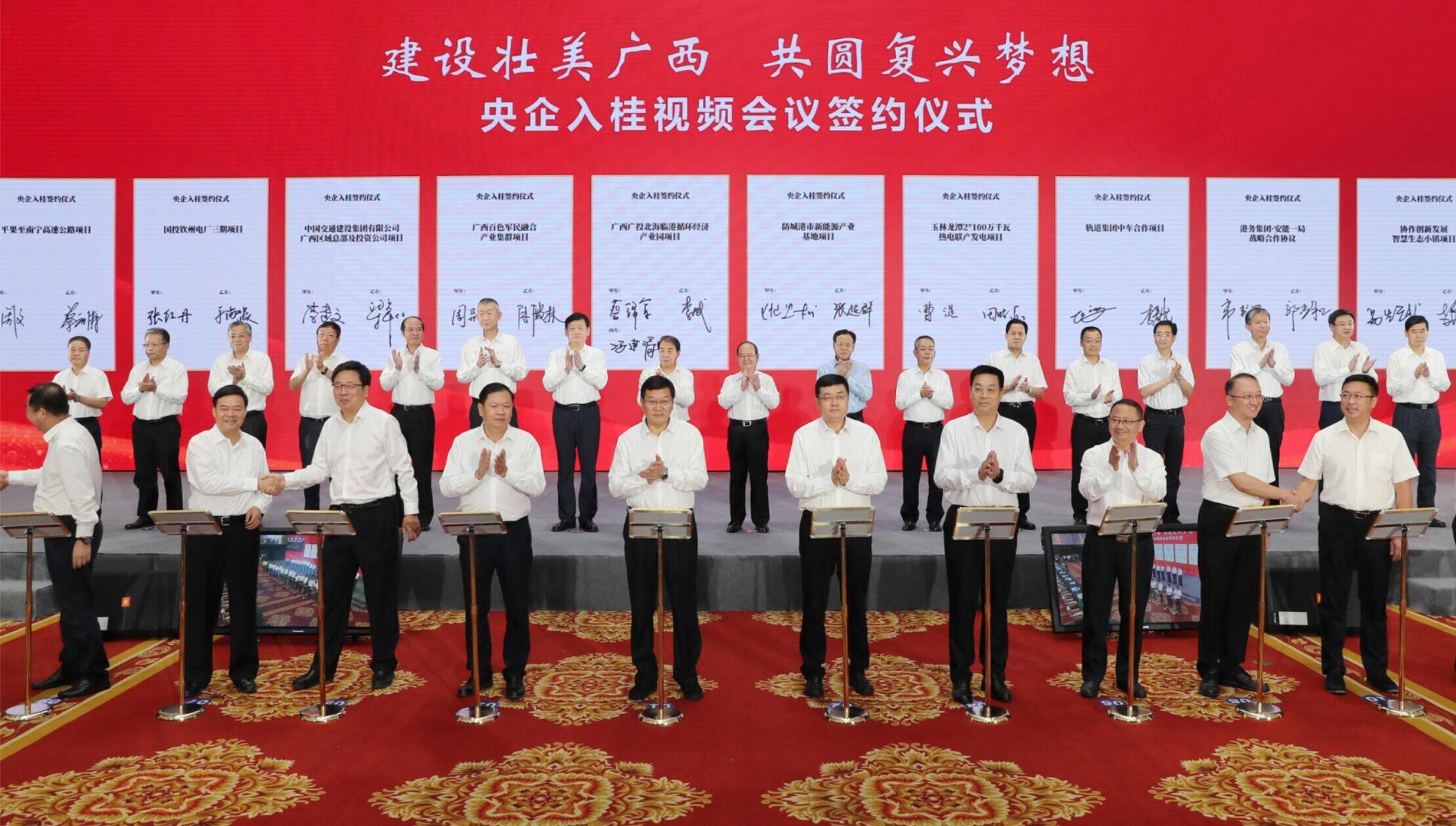 广西壮族自治区党委书记鹿心社表示,当地将强化全方位要素保障,营造一流营商环境,提供最优服务,与央企共同落实好签约项目,并以此为契机进一步深化合作,携手加快发展现代产业,合作推进重大基础设施建设,助力广西推进新型城镇化和乡村振兴。