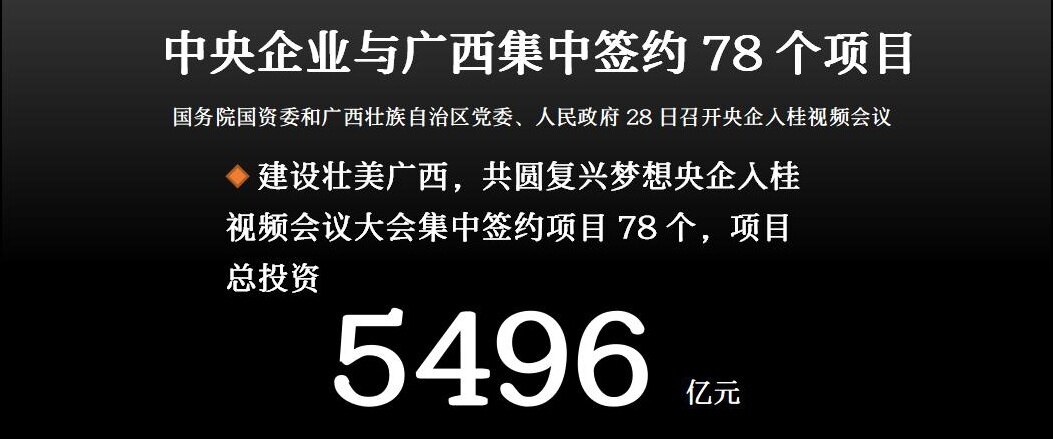 自2012年以来,央桂合作的重大项目已达293个,累计投资6043亿元,此次视频会议有力地促进了广西产业结构的优化升级。(转载请注明见道网 www.seetao.com )见道网工程栏目编辑/张建兵