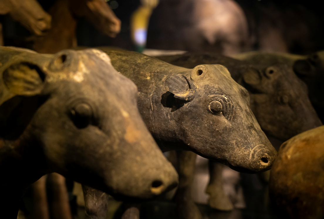 陵墓地宫中心是安放秦始皇棺椁的地方,陵墓四周有陪葬坑和墓葬400多个。主要陪葬坑有铜车、马坑、珍禽异兽坑、马厩坑以及兵马俑坑等。1980年发掘出土的一组两乘大型的彩绘铜车马——高车和安车,是迄今中国发现的体形最大、装饰最华丽,结构和系驾最逼真、最完整的古代铜车马,被誉为“青铜之冠”。