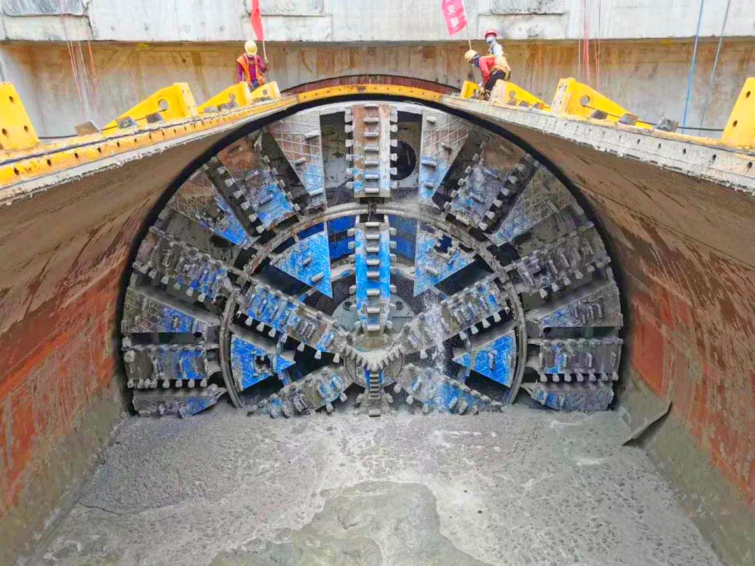 项目采用中国交建自主研发制造、出口的超大直径盾构机,盾构机直径12.12米,重2200余吨。在左线隧道掘进过程中,项目部克服了富水粉细砂地层盾构始发接收、上软下硬地层中盾构姿态控制、铁板沙地层盾构掘进控制等重大施工技术难题,首次运用了大直径钢套筒始发、接收技术,以保障盾构机安全。
